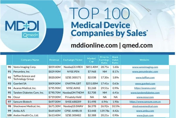 近日,医疗器械行业权威网站Medical Device+Diagnostic Industry(MD+DI)发布了2023年全球医疗器械企业TOP100榜单。yabo.com生物连续两年上榜全球百强,也是此次榜单唯二主营业务是体外诊断的中国企业。
